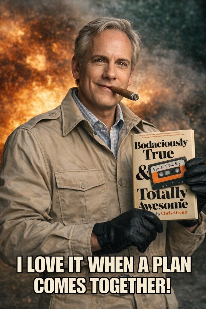 But I’m most proud of where I am in terms of my writing. At 56, and (relatively) fit and sober, I’m at the height of my powers as a novelist. At the risk of sounding immodest, as I’ve been polishing Episodes III through V of Bodaciously for publication, I’ve been so impressed by so much of it that I can’t believe I wrote it.